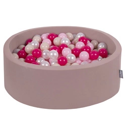 KiddyMoon Suchy basen okrągły z piłeczkami 7cm Zabawka basen piankowy, wrzosowy: pastelowy beż-brązowy-biały