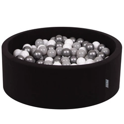KiddyMoon Suchy basen okrągły z piłeczkami 7cm Zabawka basen piankowy, czarny: biały-szary-srebrny